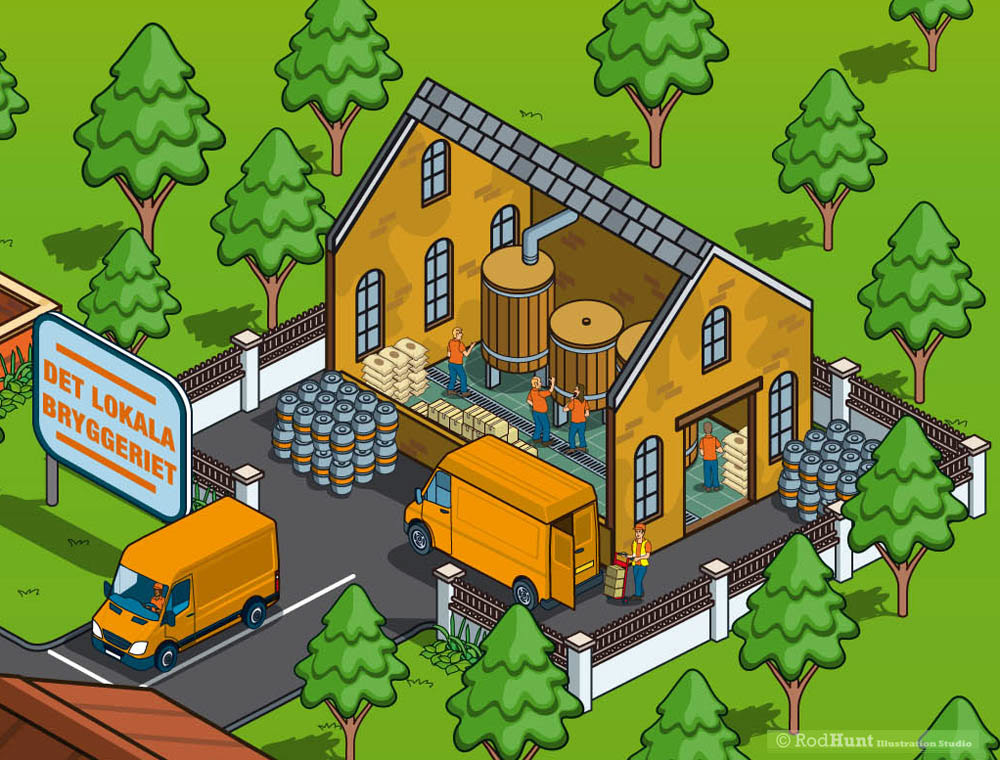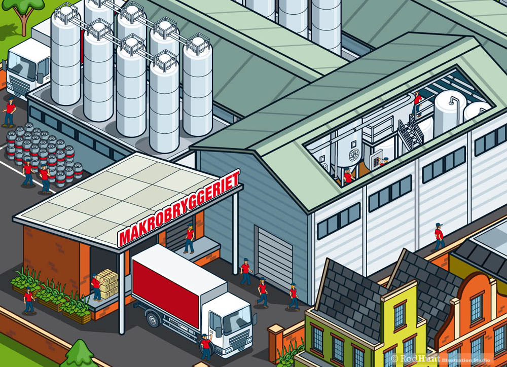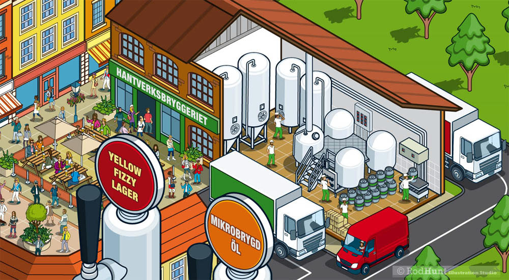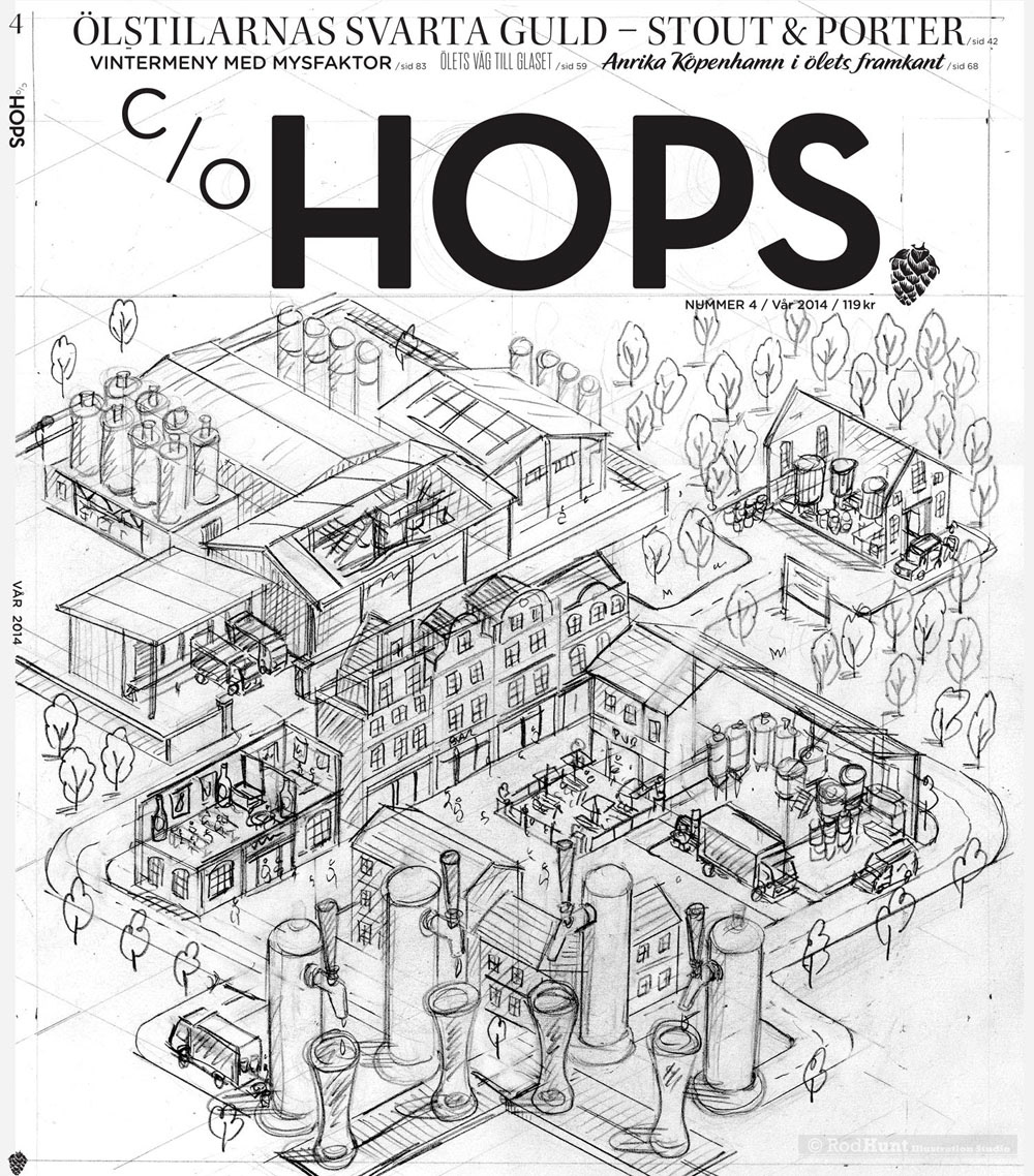 Rod Hunt was commissioned to create an infographic of the different sizes of brewery facilities for the cover of Swedish craft brewing magazine c/o Hops. The article focused on sorting out the multitude of different 'labels' for new craft beer and brewers.