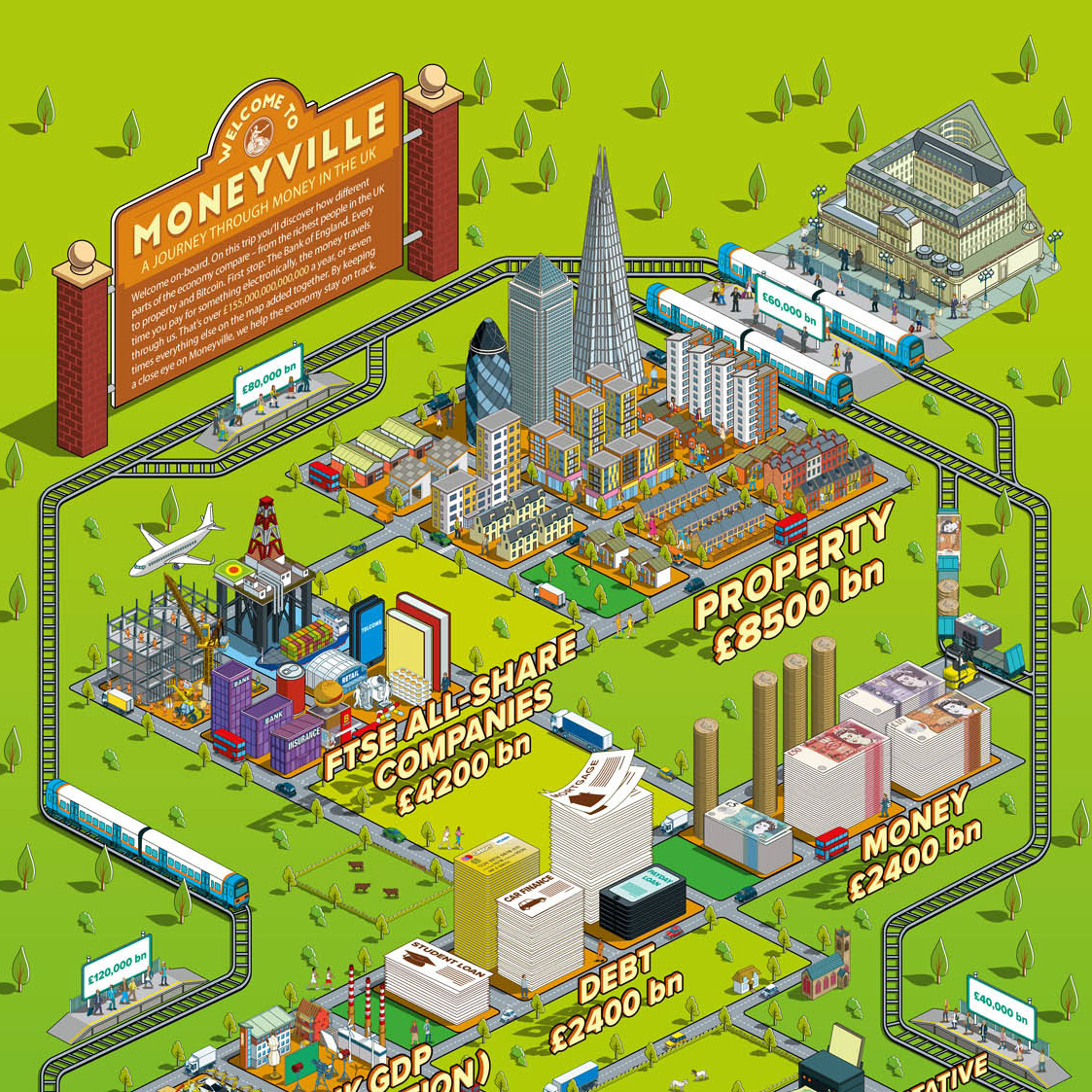Rod created a detailed cutaway isometric illustration visualising the 50 Electric Boulevard office building, its architecture, interior and the surrounding Battersea neighbourhood. The detailed cross section illustration was animated creating a stunning film and an interactive building model used across the marketing brochure, website, and other merchandise.